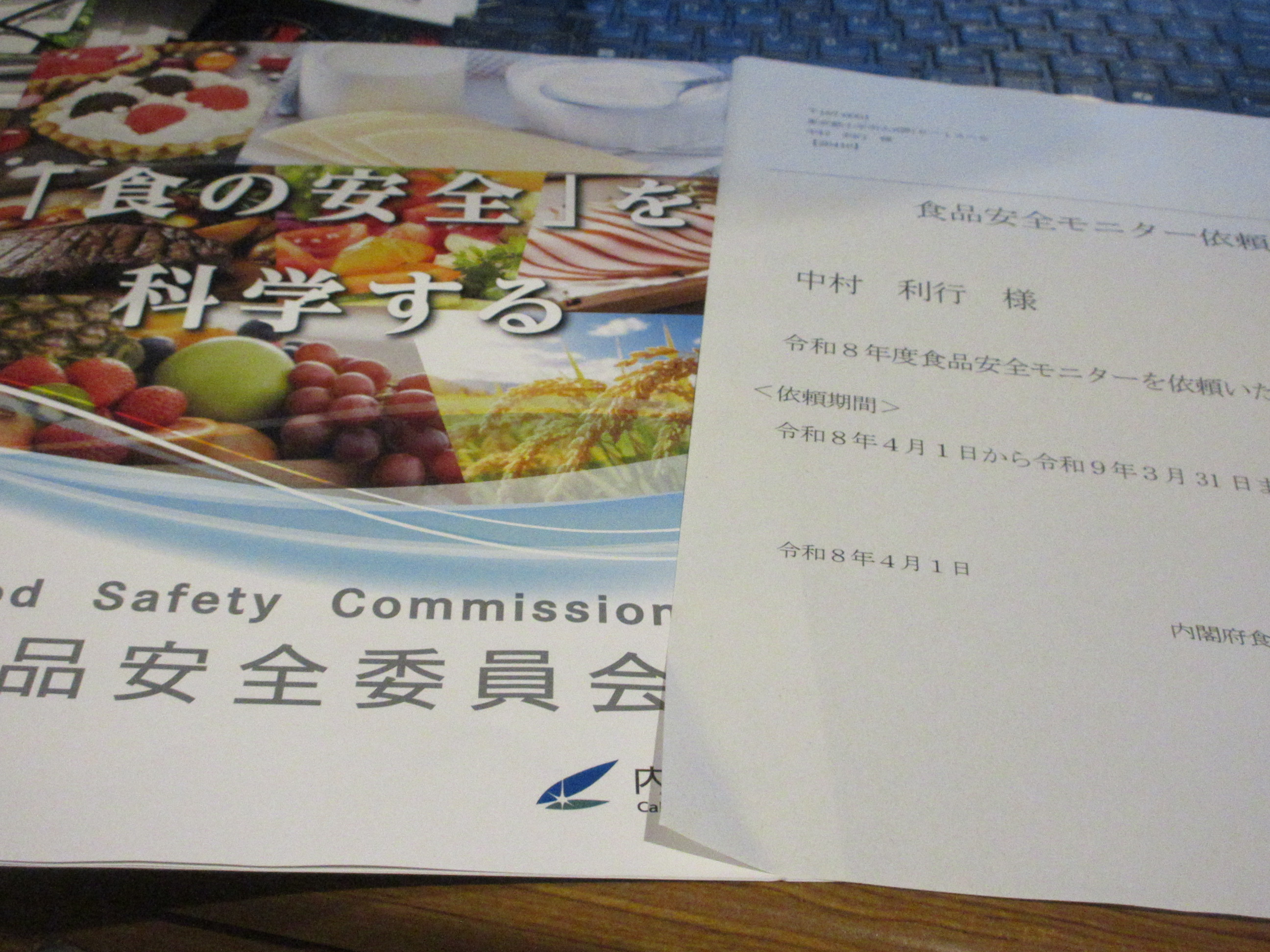 内閣府食品安全委員会の食品安全モニターになりました。